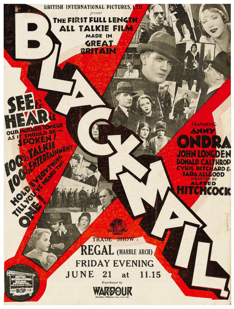 What I found to be a much more compelling use of sound than The Jazz Singer (in which sound is only used for small parts of the film, it is mostly silent) was Alfred Hitchcock’s Blackmail (1929).