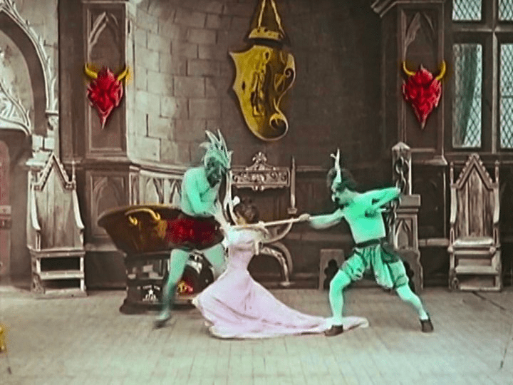 ^ still from The Gulf Between (1917), the first film to use the technicolor two color process